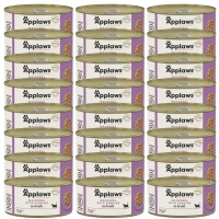 APPLAWS Filete de Atún con Gambas en Caldo Lata 6x70g + WILD FARM Mousse Pescado Blanco 6x80g - mousse sin cereales para gatos