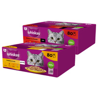 WHISKAS Adulto sobres 40 x 85 g Mezcla de Sabores - comida húmeda para gatos adultos, en gelatina + WHISKAS Adulto sobres 40 x 85 g Comidas Clásicas