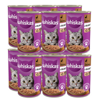 WHISKAS Comida húmeda para gatos 1+ con gelatina de pato 12x400g
