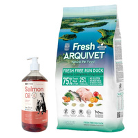 ARQUIVET FRESH - Pienso semi-húmedo para perros pato con pescado de mar 10 kg & Aceite de salmón Lab-V 1000 ml