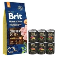 Brit Premium By Nature Junior M con Pollo 15kg & WILD FARM Monoprotein Mix Flavors 6x400g alimento hipoalergénico para perros